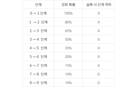 ☆ 7단계와 8단계의 강화는 실패 시 스킬 레벨이 1단계 하락 합니다.