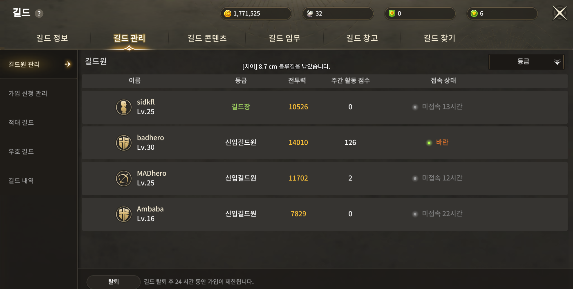 A1 서버 'villain' 길드 같이 꾸려나가실 길드원을 모집합니당! 작성자안세현|작성시간23.09.18|조회수50 목록 댓글 0 글자크기 작게가 글자크기 크게가 같이 잔잔하게 게임하면서 길드 퀘스트도 하고 출석도 해주실 길드원을 모집합니당!천천히 길드레벨도 올려서 길드 컨텐츠도 해여!! 다음검색 현재 게시글 추가 기능 열기 북마크 공유하기 신고 센터로 신고 댓글 댓글 0 댓글쓰기 답글쓰기 댓글 리스트