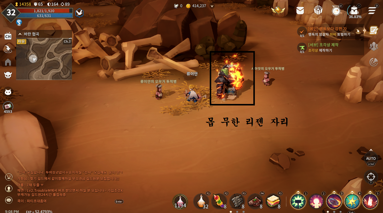 3. 발생 현상 몹 무한리젠 한자리에서