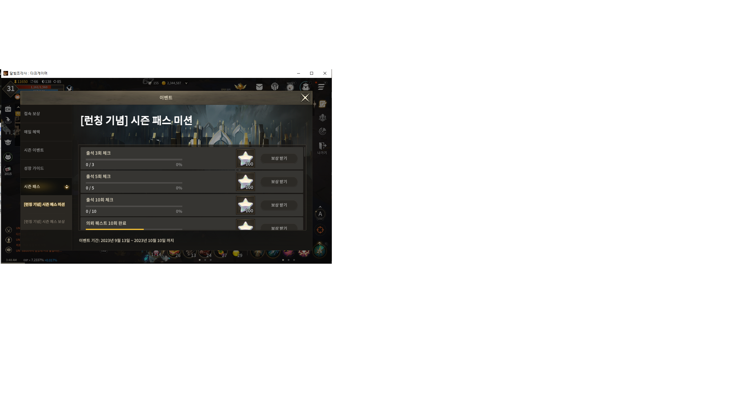 3. 발생 현상 스샷에보시다시피 오픈날부터했는데 출석체크가 0/3회 임 다른 퀘스트는 진행되는데 출석체크만 안됨
