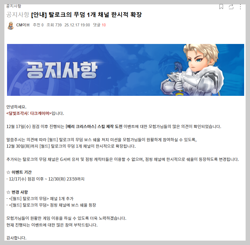 작성자CM이브 작성시간 25.12.31 모험가님! 소중하신 의견에 감사드립니다.