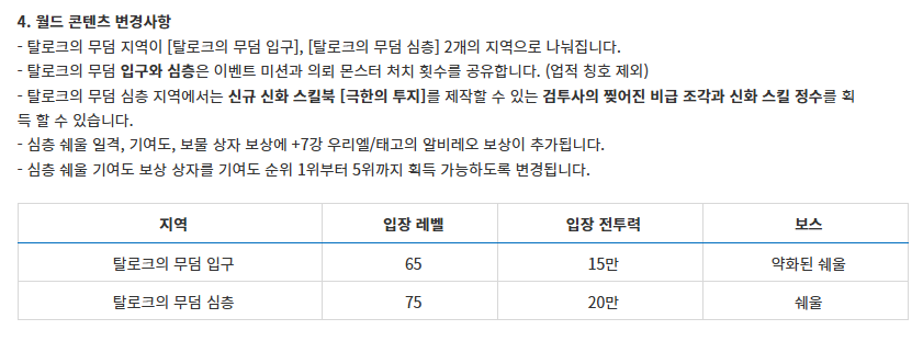 이번 업데이트로 인한 탈로크의 무덤에 입장 전투력 제한이 생겼는데.(15만)