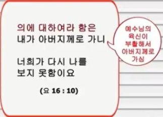 요 16:10- 의에 대하여라 함은 내가 아버지께로 가니 너희가 다시 나를 보지 못함이요.