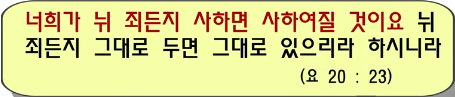 그래서 성령을 받은 하나님의 자녀들이 예수의 이름으로 죄를 사하는 권세를 받게 되는 것이다.
