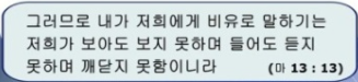 예수님이 전한 새 언약의 말씀 천국 복음을 들어도 듣지도 못하고, 보아도 보지도 못한다.