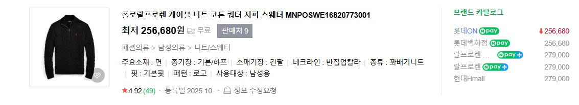 폴로정품 반집업 니트 입니다 라벨달린 새상품입니다