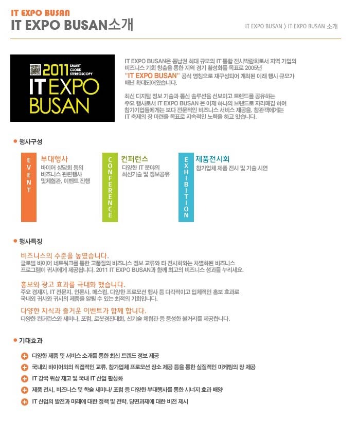 2011 IT 엑스포 부산에 초대합니다. 작성자IT EXPO BUSAN|작성시간11.09.05|조회수121 목록 댓글 0 글자크기 작게가 글자크기 크게가 다음검색 현재 게시글 추가 기능 열기 북마크 공유하기 신고 센터로 신고 댓글 댓글 0 댓글쓰기 답글쓰기 댓글 리스트