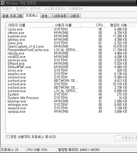 그런데 도무지 cpu 사용량이 50%정도로 계속 사용되는지 알 수가 없네요..운영자님 헬프 좀 해주세요 ㅠㅠ