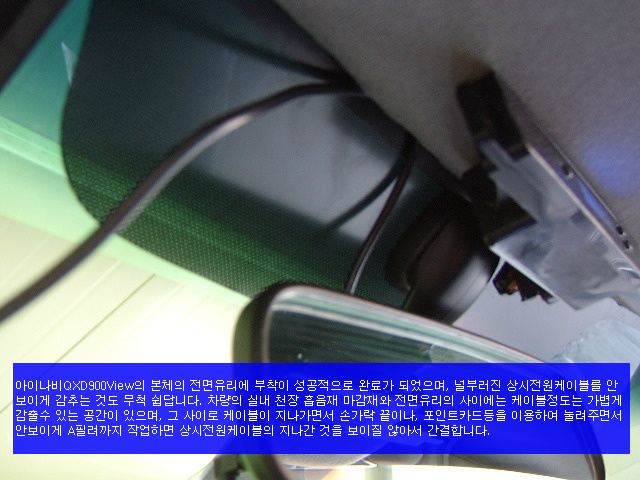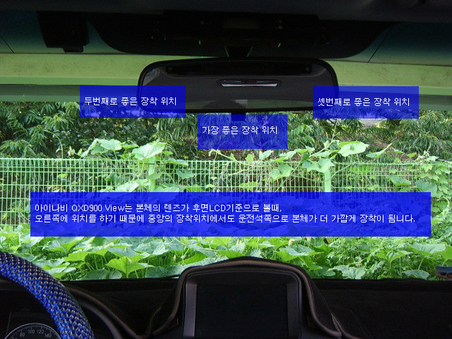 아이나비QXD900View의 본체의 전면유리에 부착이 성공적으로 완료가 되었으며,