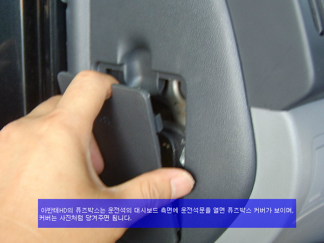 위하여 퓨즈박스 커버를 사진과 같이 당기면 됨니다. 차종마다 퓨즈박스의 배치도 다르지만, 퓨즈박스커버의