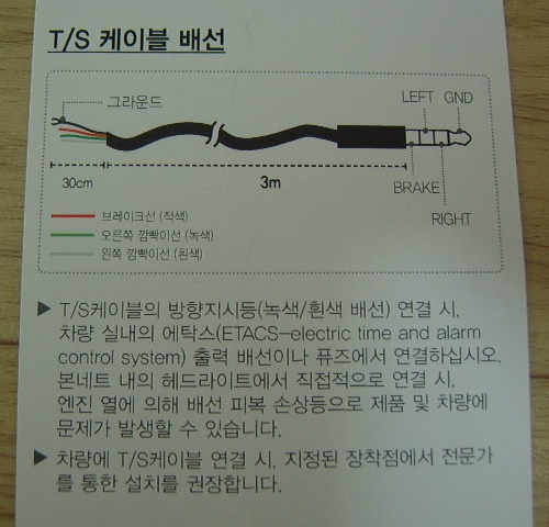 녹색선의 오른쪽 방향지시등 연결전선, 흰색의 왼쪽 방향지시등 연결전선으로 구성이 되었으며,