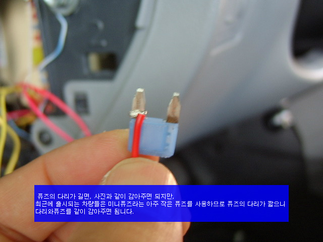 퓨즈의 다리가 길면, 사진과 같이 감아주면 되지만, 최근에 출시되는 차량들은 미니퓨즈라는