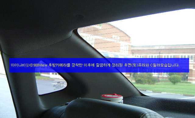 아이나비qxd900view 후방카메라를 장착한 이후에 깔끔하게 정리된 후면(뒷)유리와 C필려모습입니다.