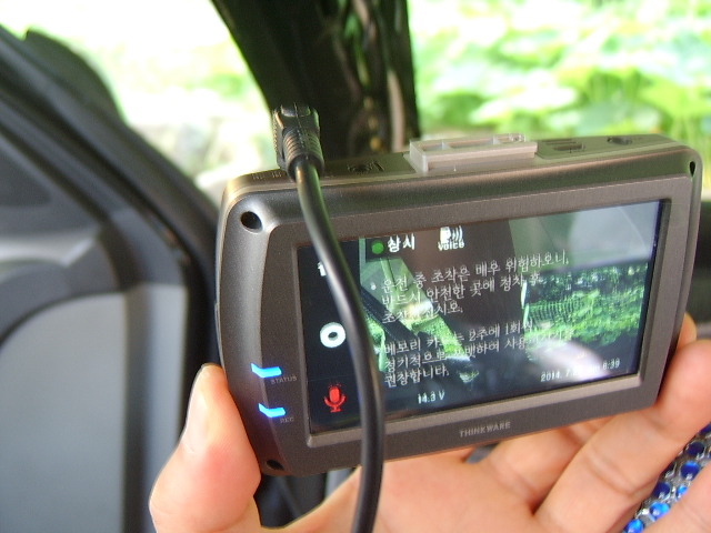기능으로 본체의 전면유리에 부착하기 위하여 전방실시간영상을 보면서 화각에 맞게 부착을 하였습니다.