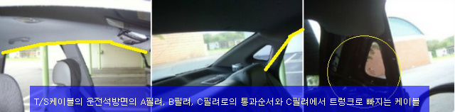 후방카메라연결케이블 매설(감추기)작업, LDWS를 위한 T/S케이블의 연동작업을 사진과 추가적인 설명글을