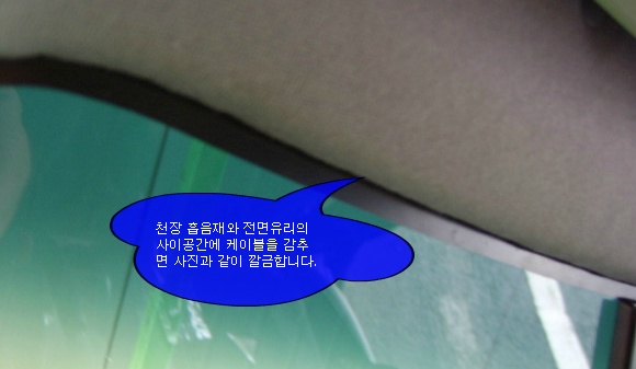 차량의 실내 천장 흡음재 마감재와 전면유리의 사이에는 케이블정도는 가볍게 감출수 있는 공간이 있으며,