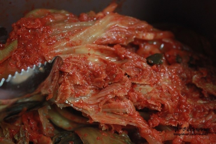 재료 : 김치, 참치캔 1개, 김치국물 4-5 1Ts. 고추가루 1Ts, 멸치&새우가루 or 맛선생 1ts ※ Ts(밥숟가락)/ ts(차숟가락)