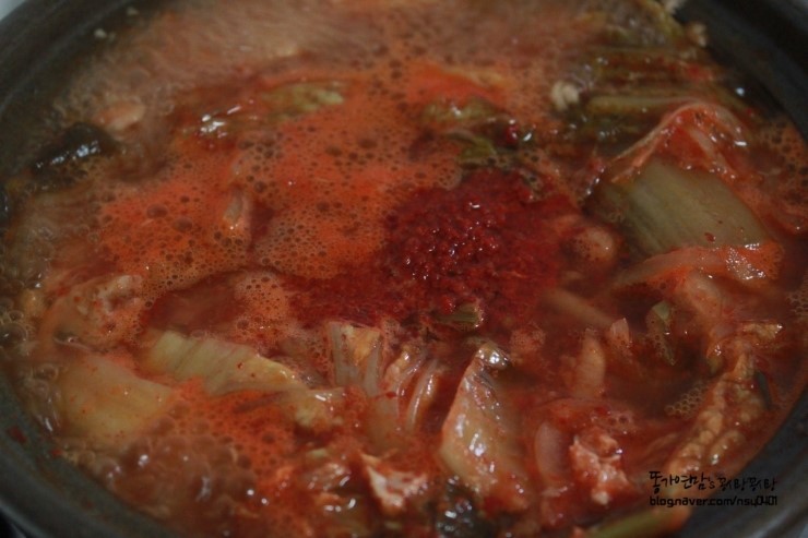 보글보글 끓죠 고추가루도 넣어요