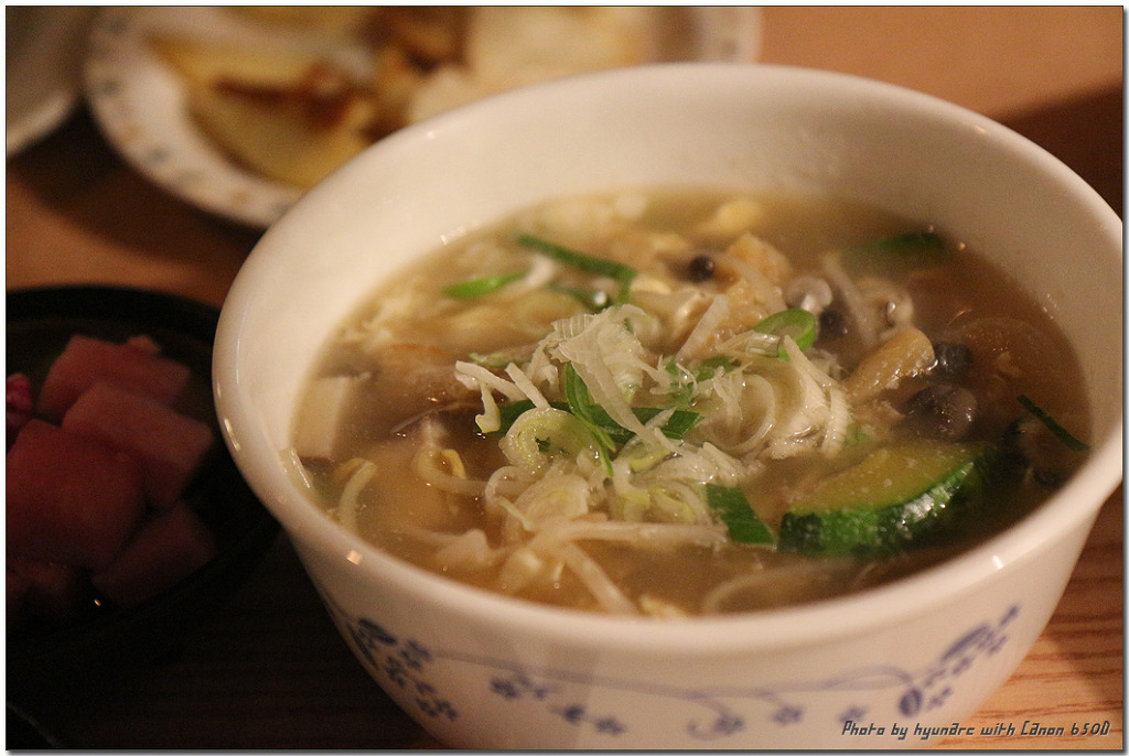 기본 밑반찬 나오고, 치킨그릴은 은은한 된장맛에, 서비스로 안키모까지...
