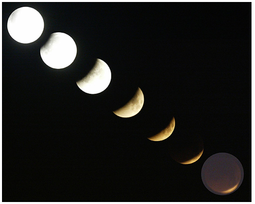 관측자가 달에 살고 있다고 해보세요. 태양과 달 사이의 선상에 지구가 들어오게 되면 달에 있는 관측자 입장에서는 지구가 태양을 가린 것처럼 보이겠지요. 바로 이 순간에 지구에 있는 사람이 달을 보면, 지구가 태양을 가림으로써 생긴 그림자 속으로 달이 들어간 것처럼 보입니다. 지구의그림자 속에 들어간 달의 모습은 볼 수 없으니 달의 형태가 전과 달리 보이겠지요. 이것을 월식이라고 합니다.