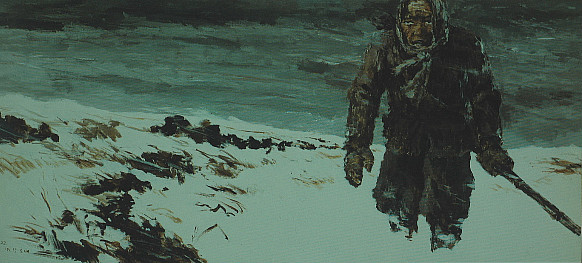 눈 속의 연락병 - 민중과 유격대원의 목숨을 지키기 위하여 토벌대의 위치를 연락하는 산군.
