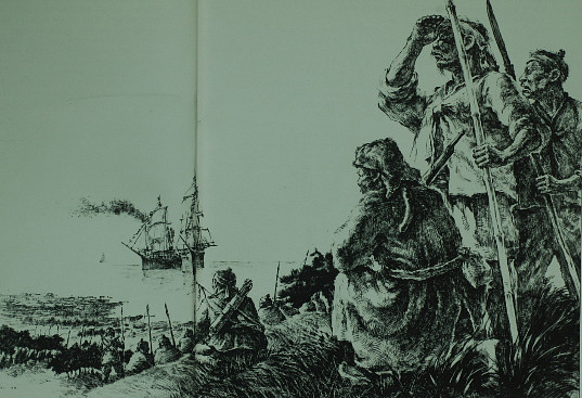 이재수의 난 - 제국주의 프랑스 함대와 대치하고 있는 제주 민중(1901년). 개가죽 두루마기와 개꼬리 감투를 쓴 전사의 모습.