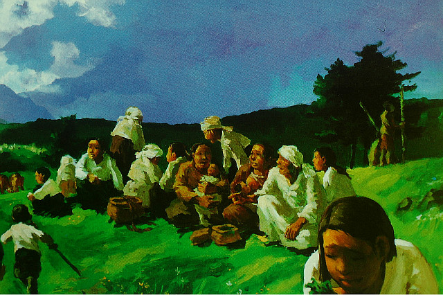 한라산자락 백성 - 조국분단의 5.10 단독 선거를 거부하여 제주 민중은 당일 또는 며칠 전부터 무리지어 한라산자락으로 피신하다.