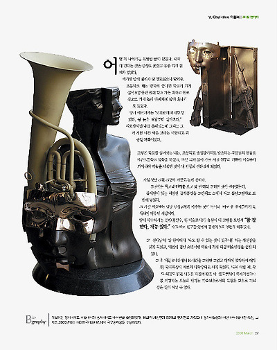 "지난 2006년 금호미술관에서 가진 조각 개인전 이후 이철희는 인간과 환경, 그리고 문명이라고 하는