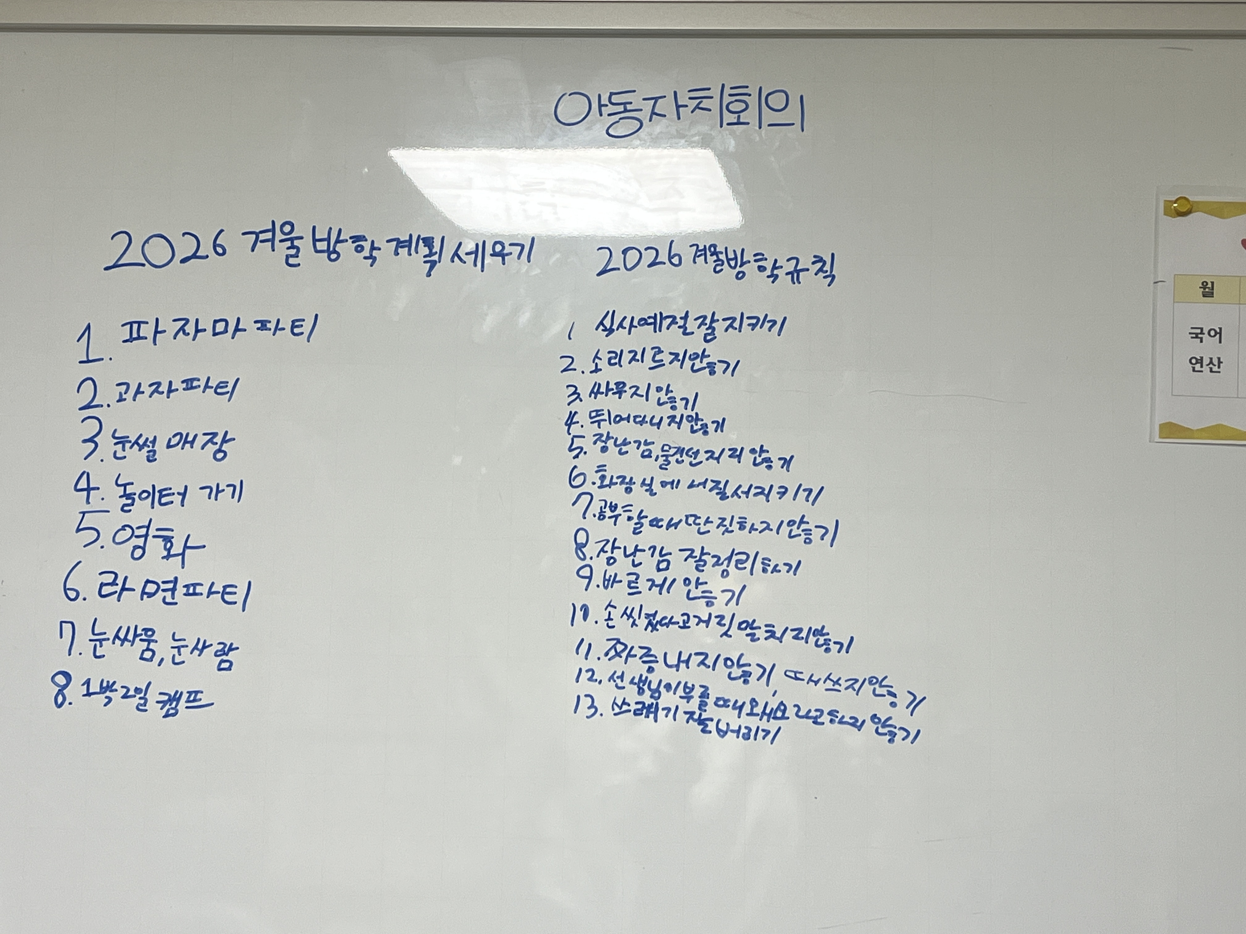 20260119 아동자치회의 2회기 작성자정명희|작성시간26.02.24|조회수3 목록 댓글 0 글자크기 작게가 글자크기 크게가 다음검색 현재 게시글 추가 기능 열기 북마크 공유하기 신고 센터로 신고 댓글 댓글 0 댓글쓰기 답글쓰기 댓글 리스트