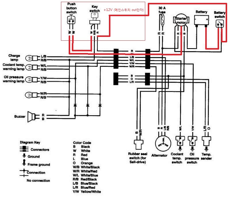 3. 에어빼기 등과 같은 특수한 상황에서 편리하다. 하여 기존 얀마엔진의 전기배선도를 분석하고, 스타트모터에서 선을 하나 따와서 시동스위치를 제작하고 엔진룸에 설치하엿다. <그림2. 얀마엔진 전기배선도 분석> 전기배선도 원본 http://cfile255.uf.daum.net/image/2414CE4A5701208B2F8123 얀마 123gm 해당사항 인것으로 알고있음.