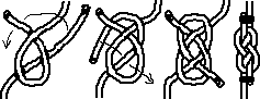 This is a very important knot of only theoretical value. Without extra support, it is untrustworthy in any situation, except as a crossing knot. You have to learn it for scouting and at sailing schools. If you have to use it, work it up properly; pull length-wise only at both ends before you load the working end. It is better to use The Rolling Hitch instead.
