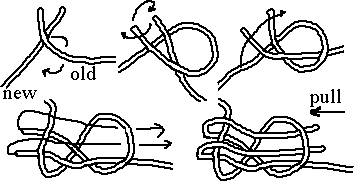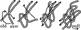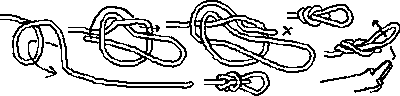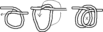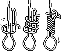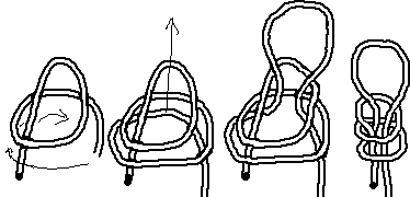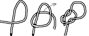 Now, you pull over the standing part of the line you tie on, (third drawing)