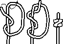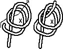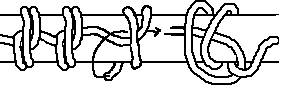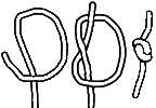 Lay one bight over the other (check that the sequence is correct by examining the rectangle r) Take one end and lock the bights as shown. Arrange the doubling so that both ends finish at x ~ this is the top loop of the knot.