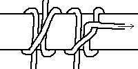 The working ends are then pased as shown n a regular over and under weave to lock and complete the knot.