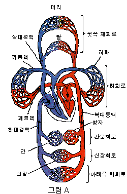 그리고 혈액의 흐름을 지배하는 것은 심장이다. 심장의 펌프 작용의 힘으로 혈액은 화물을 싣고 심장을 빠져나가 전신을 쉴새 없이 돌아다닌다. 즉, 다시 심장에 돌아왔다가 또 내보내진다.