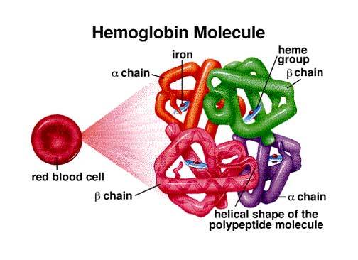 산소를 운반하는 이 적혈구의 역할은 적혈구내의 헤모글로빈의 양에 의해 좌우되고 있다. 헤모글로빈은 혈액에 빨간 빛깔을 내게 하고 있는 단백질과 철의 화합물인데 산소를 붙잡아 목적지에 도달할 때까지 절대로 놓치지 않는 화학적인 기능을 갖추고 있다.