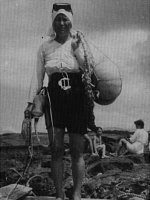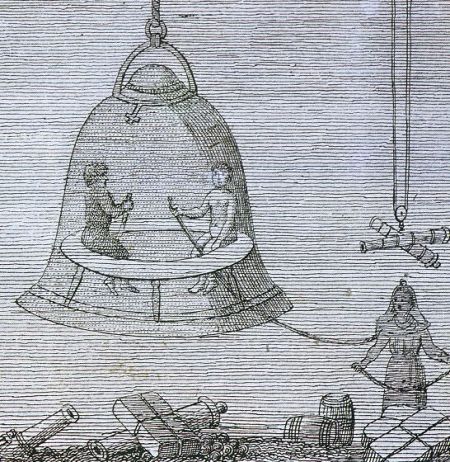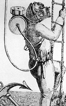 그리고 자신을 지탱해 줄 수 있는 장치를 가진 도구를 가지고 있었다. 그래서 종처럼 생긴 잠수기 안에 매달려 있으면서 잠수기 속에서 머무르고 작업을 했다. 또는 숨을 참고 짧은 거리를 움직일 수 있는 정도였다.