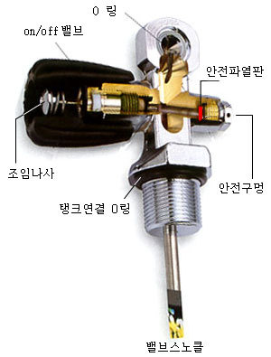 스쿠버 탱크의 밸브 나사선의 윗부분에는 안전구멍(safety hole)이 있다. 이것은 공기가 들어 있는 탱크에서 밸브를 제거하려 할 때 쉬~” 소리를 내며 탱크 안에 공기가 있음을 알리는 역할을 한다.