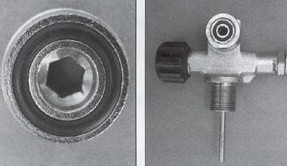 밸브는 이온 교환이 일어나 탱크의 나사선에 붙을수 있으며 주로 알루미늄 탱크에서 발생한다. 오래된 탱크밸브중에는 파이프의 나사선을 갖고 렌치로 조여진 것도 있으며 이를 해체하기 위해서는 큰힘이 필요로 한다. 권장하는 것과 같이 매년 탱크 밸브의 점검을 실시하면 밸브의 고착상태를 예방 할 수 있다.