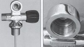 거꾸로 300bar 어댑터는 200 또는 232 DIN 탱크 밸브에 사용할 수 있다. 그러나 양쪽 모두 스펙에 맞는 것을 사용하는 것이 좋다.