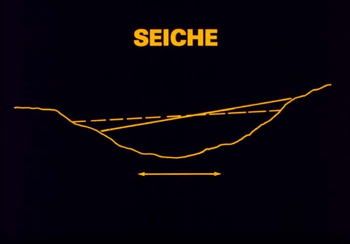 큰 호수등지에서 이런 부진동은 수면의 기압차에 의해서도 생기지만 대개는 바람에 의해 형성된다. 예를 들어 강한바람이 몇 시간 동안 호수의 한쪽 축을 따라 불게되면 바람의 하류 쪽으로 물은 거의 10피트 이상의 높이로 모이게 되며 반대편은 그만큼 수위가 낮아지게 된다. 이 진동은 진폭이 급히 손실되지만 12-14시간이 넘는 주기를 갖게 된다.