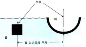 고대 그리이스의 철학자인 아르키메데스는 시라큐스의 공중목욕탕에서 탕안에 몸을 담그면 물이 넘치는 현상을 보고 “액체에 잠긴 물체는 잠긴 부피만큼의 액체의 무게와 같은 힘의 부력을 받는다” 라는 아르키메데스의 원리를 만들었다.