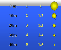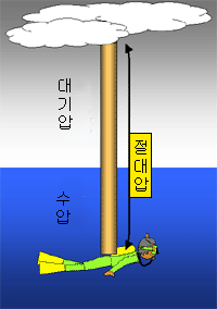 잠수를 할 때 다이버는 물과 그 위의 대기압력을 함께 받게 된다. 즉 해수면에서는 1기압의 공기압력을 받으므로, 해수 33피트(10미터)에 서는 대기압 1기압과 물로부터 받는 1기압을 더하여 합계 2기압을 받게 되고, 해수 66피 트(20미터)에서는 3기압의 압력을 받게 된다.