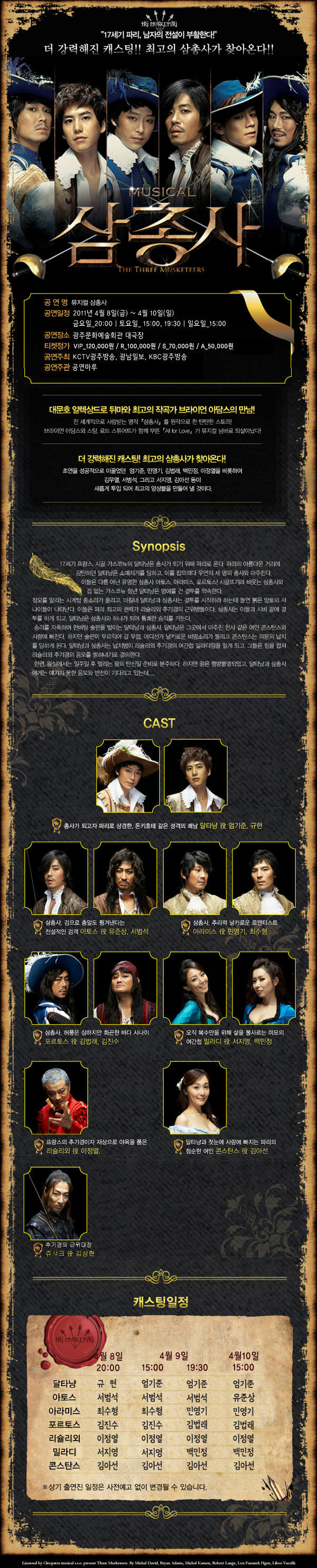 뮤지컬 <삼총사> 광주공연 티켓오픈 안내입니다.