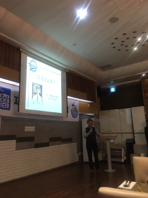 맛있는 뷔페를 즐긴 후 현 회장 공아승 선수의 개회사와 지도교수님이신 김동휘 교수님과 오비 회장님 안명수 선배님의 축사로 본격적인 야밤이 시작됐습니다!!!