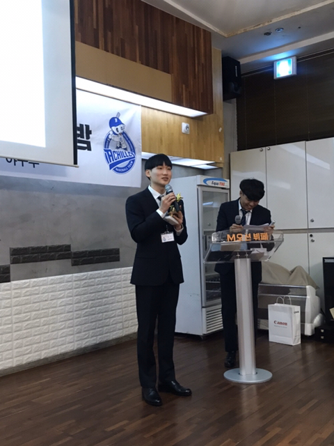 시상은 송경언 선배님이 수고해주셨습니다. 앞으로도 멋진 야구 실력 기대할게요 송재욱 선수ㅎㅎ