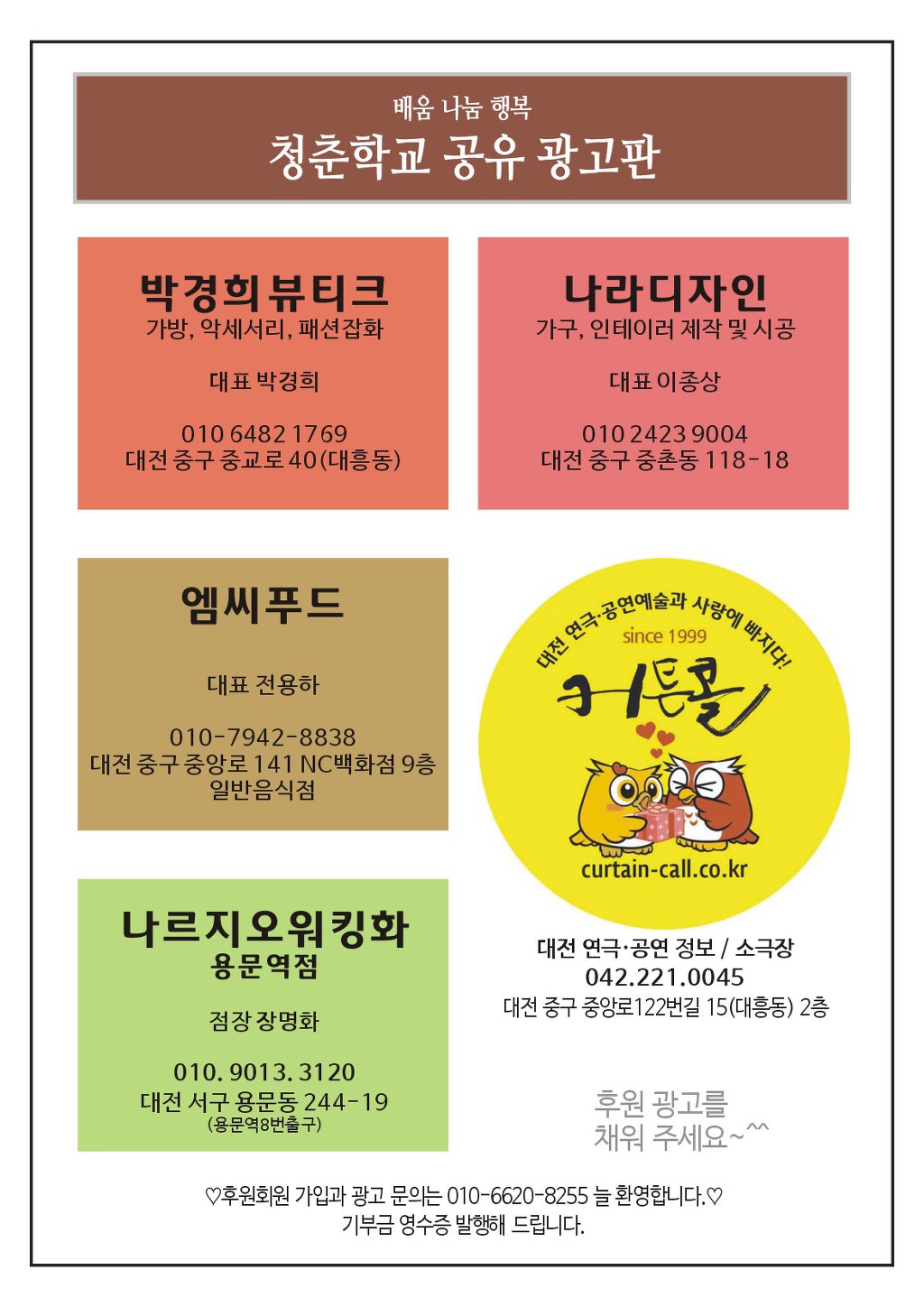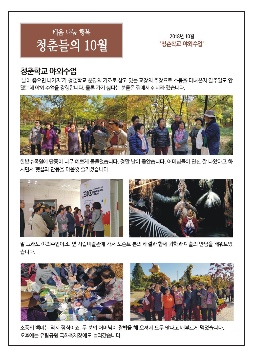 대전 청춘학교 10월 소식지입니다. 작성자전성하|작성시간18.11.06|조회수61 목록 댓글 0 글자크기 작게가 글자크기 크게가 다음검색 현재 게시글 추가 기능 열기 북마크 공유하기 신고 센터로 신고 댓글 댓글 0 댓글쓰기 답글쓰기 댓글 리스트