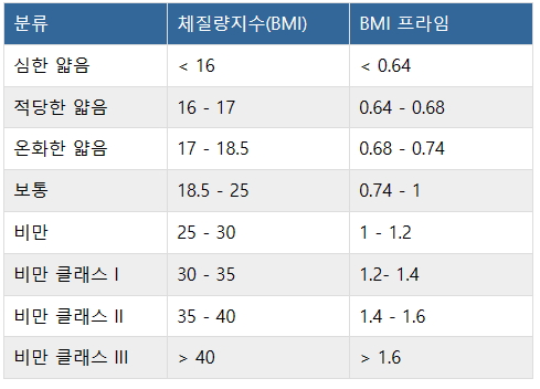 - 일반적으로 건강한 BMI를 가진 사람에 비해 사망 위험이 증가합니다