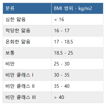 - 일반적으로 건강한 BMI를 가진 사람에 비해 사망 위험이 증가