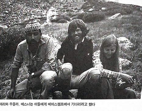 책에서 한 가지 더 인상깊은 대목은 메스너가 정상 등정 전 워밍업 차원에서 베이스캠프 북동쪽에 있는 가날로 봉(6603m)을 우즐라와 함께 오른 사실이다. 메스너야 프로 중의 프로 산악인이니 어려운 일이 아니겠지만 의무대원 우즐라는 트레커 정도 수준이었다. 홀로 세계 곳곳을 여행했고 산악지대를 걷는 것을 좋아하며 에베레스트 베이스캠프를 다녀 온 경험이 있다지만, 그 정도의 경험만으로 28세의 여성이 6600m 고봉을 등정 했다는 사실이 신기하다. 4200m의 베이스캠프에서 이틀만에 고도를 2400m 올리는 일은 결코 쉬운 등반이 아니다. 우즐라도 타고난 등반 체질을 지니고 있었는 듯하다.